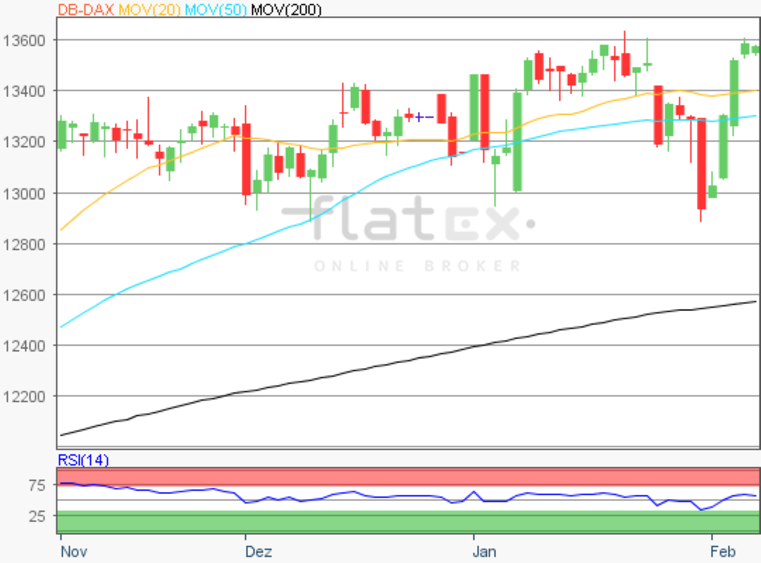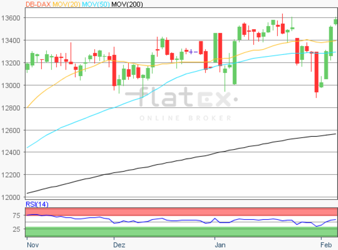 Die laufende Handelswoche hatte es bis dato in sich, denn der DAX konnte nicht nur vier Handelstage in Folge kräftig steigen, sondern erholte sich vom letzten Zwischentief des 31. Januar 2020 bei 12.973,70 Punkten bis zum Hoch am Donnerstag von 13.606,97 Punkten somit um stolze 633,27 Punkte.