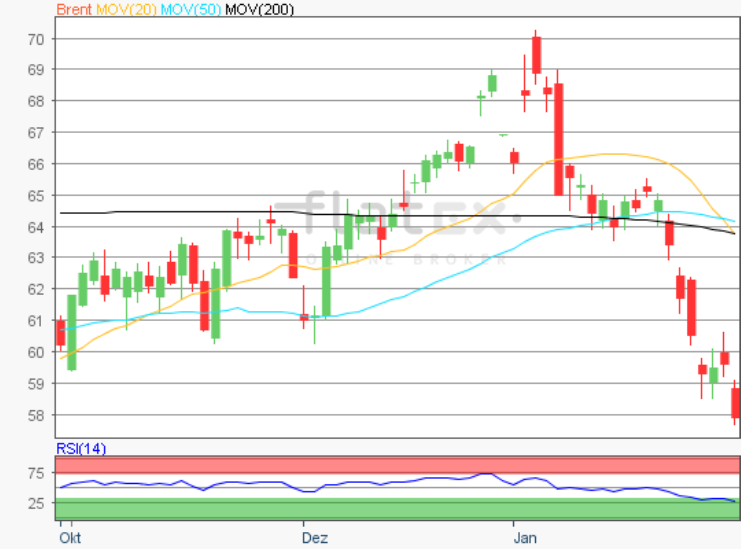Der Preis für ein Fass Rohöl der Nordseesorte Brent im April-Kontrakt an der Terminbörse ICE hat seit dem Januarhoch bereits weit über 13 US-Dollar je Fass eingebüßt.