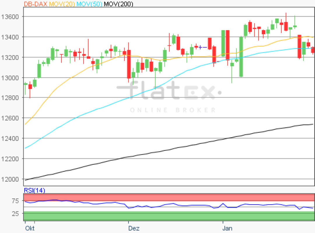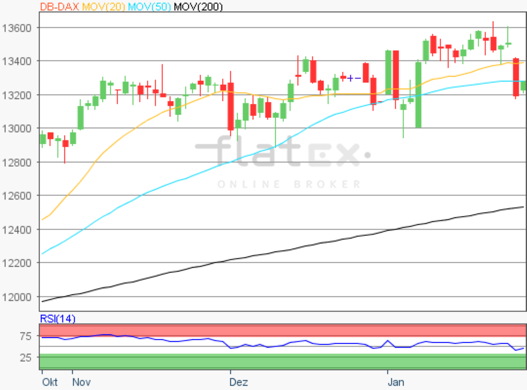 Der Deutsche Aktienindex legte zum Wochenbeginn einen kräftigen Fehlstart hin. Zum Xetra-Handelsschluss notierte der DAX mit einem Kursverlust von 2,74 Prozent und 13.204,77 Punkten.