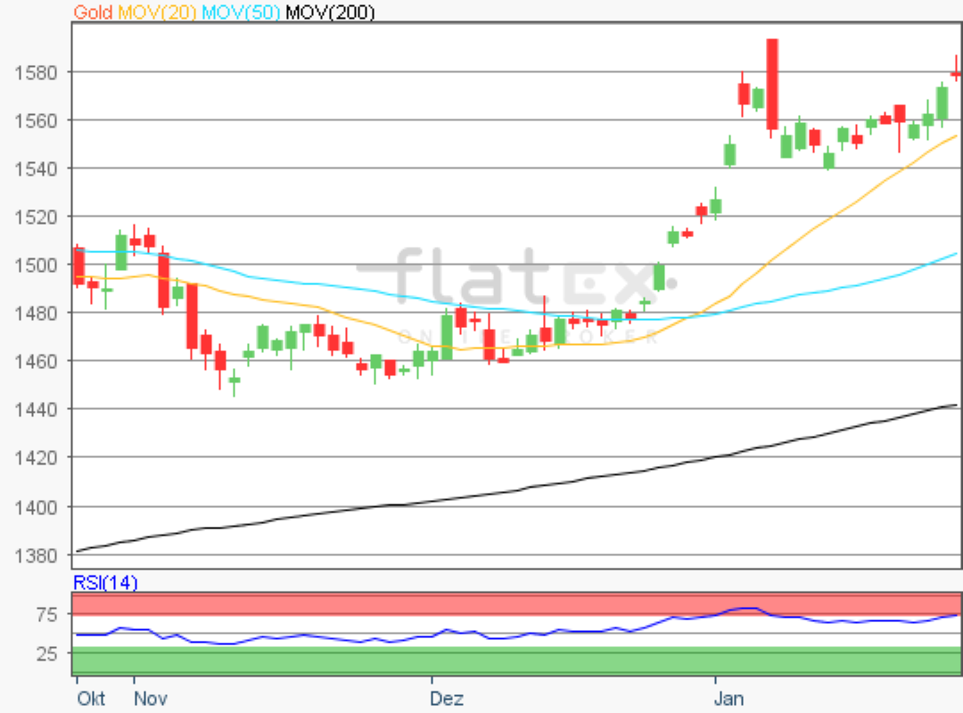 Der Preis für eine Feinunze Gold kletterte aufgrund der vermehrten Meldungen zu Todesfällen und neuen Infizierten im Zusammenhang mit dem Corona-Virus in den letzten Tagen sukzessive in Richtung des Mehrjahreshochs.