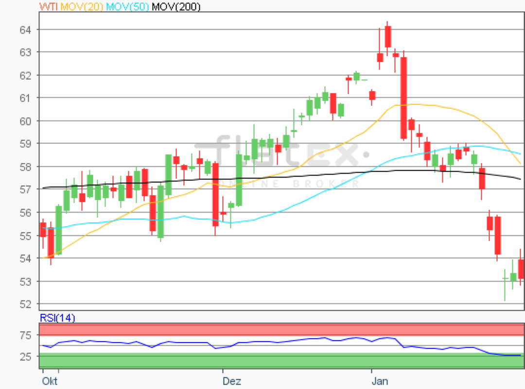 Der Preis für ein Fass Rohöl der US-Sorte WTI im März-Kontrakt an der US-Terminbörse NYMEX kam zuletzt verstärkt im Rahmen des Sell-off am Aktienmarkt rund um die Ausbreitung des Corona-Virus unter Druck.