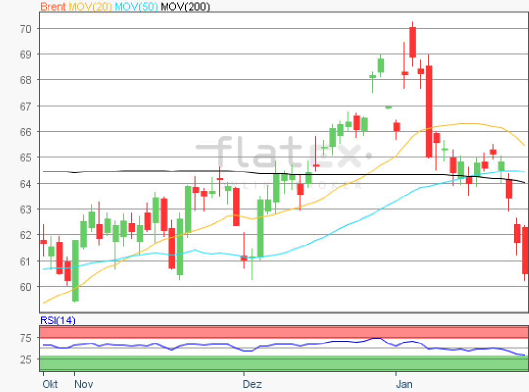 Der Preis für ein Fass Rohöl der Nordseesorte Brent im April-Kontrakt rutsche an der Terminbörse ICE am Freitag nochmals weiter abwärts.