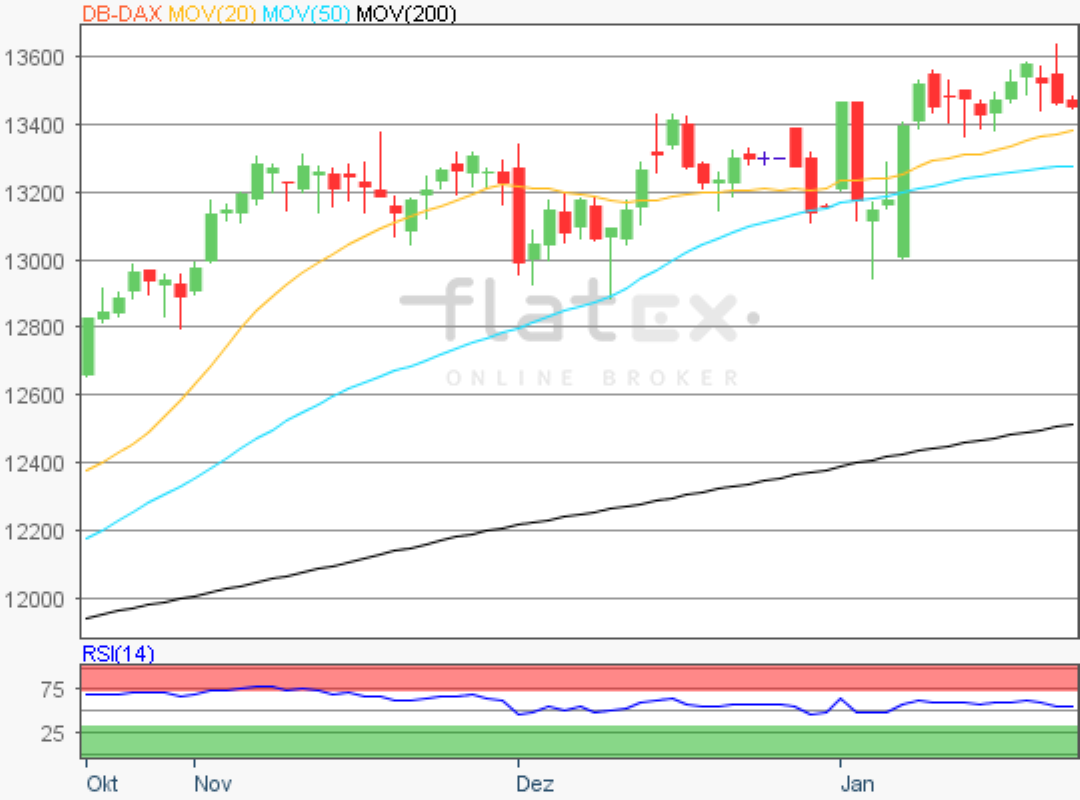 Der DAX ging am Montagmorgen der vergangenen Handelswoche bei 13.527 Punkten in den vorbörslichen Handel.