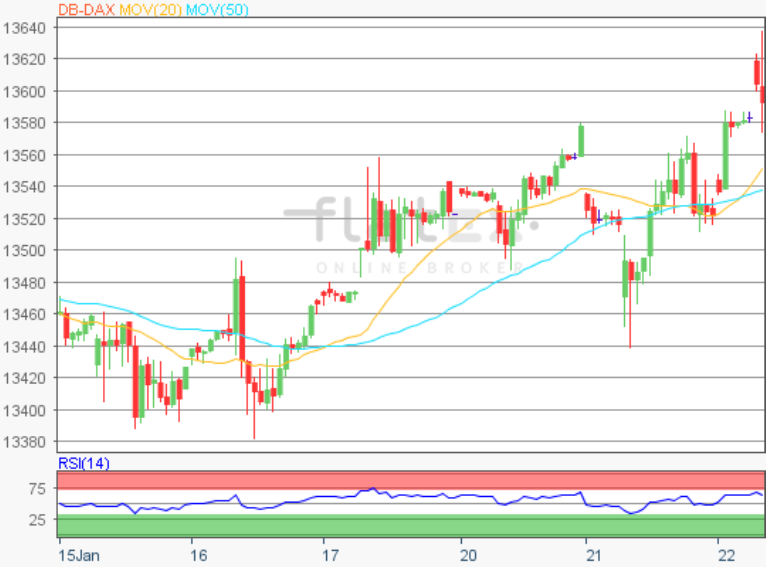 Der Deutsche Aktienindex hat es am 22. Januar 2020 beinahe exakt nach zwei Jahren zu einem neuen Rekordhoch gebracht. Intraday eroberte sich der DAX mit 13.640,06 Punkten ein neues Allzeithoch.