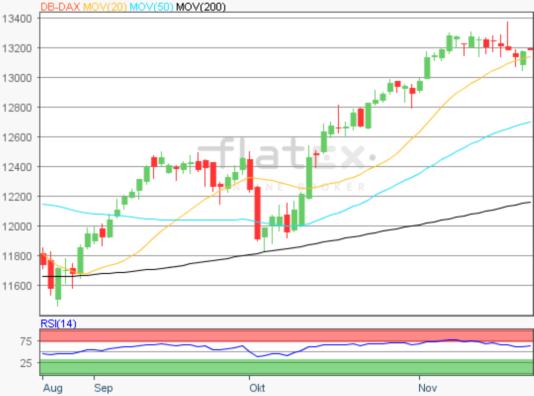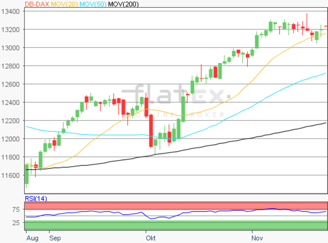 Der Deutsche Aktienindex beendete den Xetra-Handel am Freitag mit einem leichten Kursgewinn von 0,20 Prozent und schloss mit 13.163,88 Punkten. Das Handelsvolumen via Xetra und Börse Frankfurt betrug rund 3,43 Mrd. Euro.