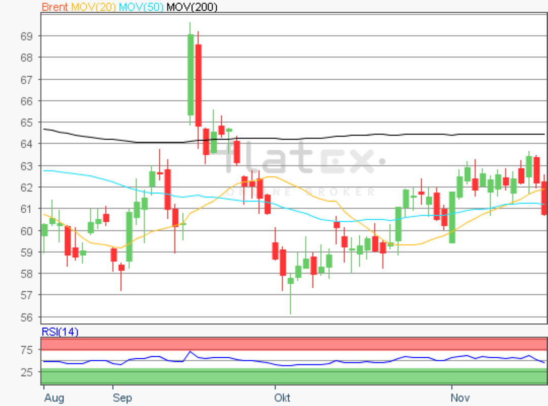 Der Preis für ein Fass Rohöl der Nordseesorte Brent im Januar-Kontrakt an der ICE notierte am Dienstag überwiegend mit Abgaben.