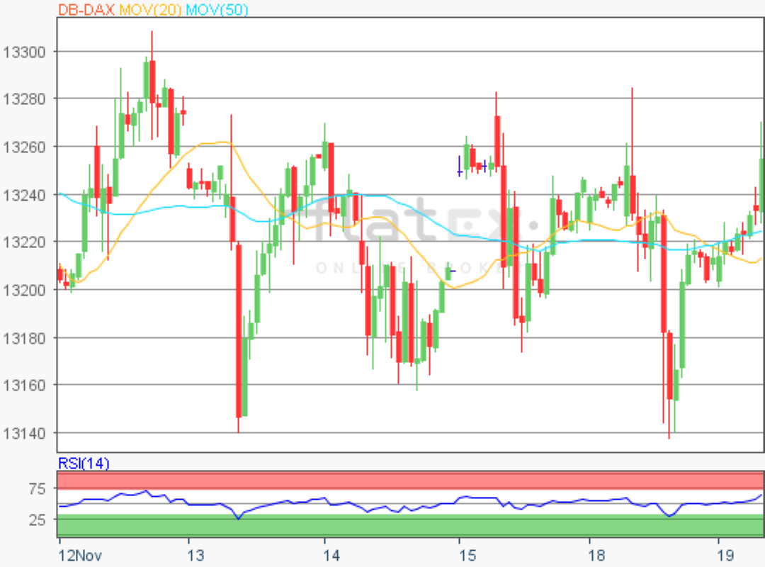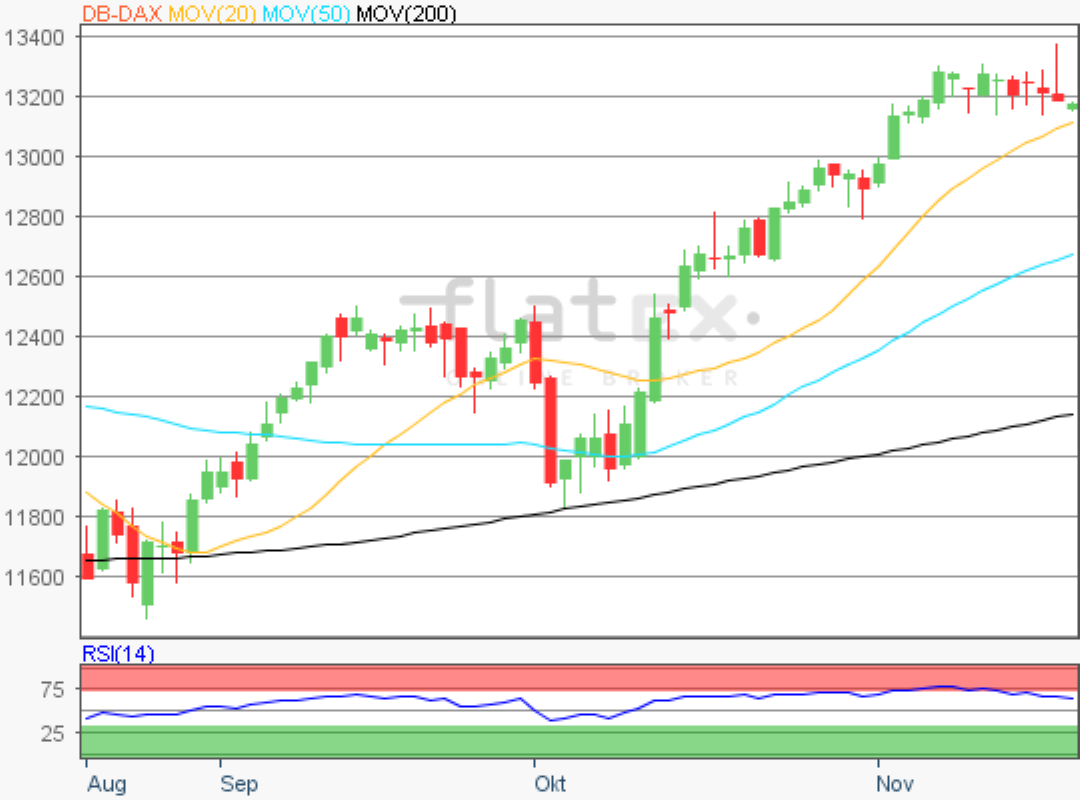 Der Deutsche Aktienindex konnte sich zu Wochenbeginn trotz eines über den Handelstag zu spürenden leichten Abwärtsdrucks bis zum Xetra-Handelsschluss oberhalb der 13.200er-Marke halten.