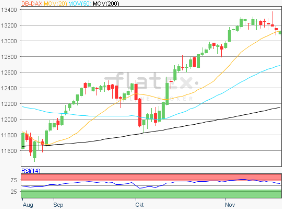 Der Deutsche Aktienindex ging am Mittwoch mit einem Kursverlust von 0,48 Prozent und 13.158,14 Punkten via Xetra aus dem Handel. Das Handelsvolumen via Xetra und Börse Frankfurt betrug rund 3,24 Mrd. Euro.