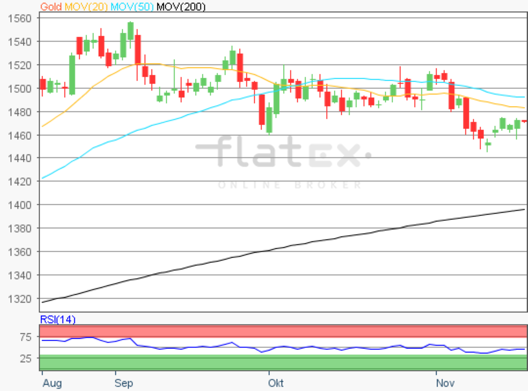 Nachdem sich das Sentiment in der vorvergangenen Woche, auch in Folge des False-Breakouts aus der seit Anfang September bestehenden Korrekturflagge, schon deutlich in Richtung Bären verschoben hatte, setzte Gold dann am Dienstag im Bereich seiner nächsten Unterstützung um $1.450/$1.445 auf und drehte wieder nach oben ab.