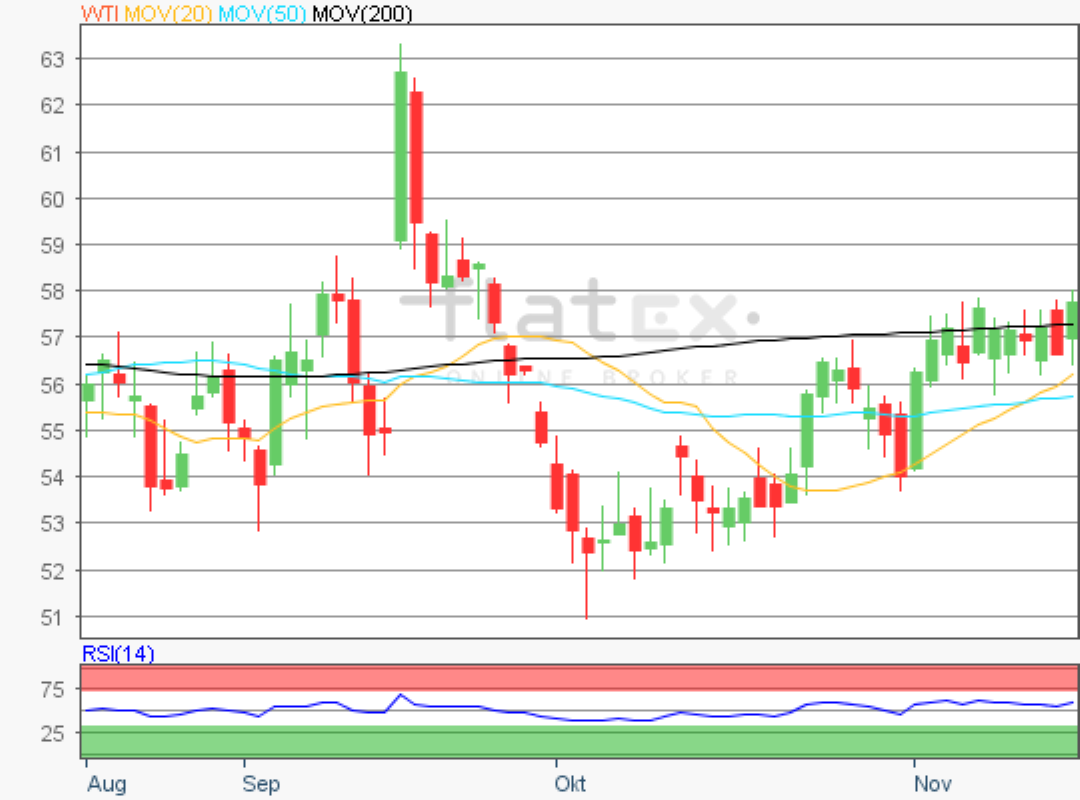Der Preis für ein Fass Rohöl der US-Sorte WTI im Dezember-Kontrakt an der US-Terminbörse NYMEX konnte am Freitag parallel mit den neuen Rekordwerten an den US-Aktienmärkten klettern.