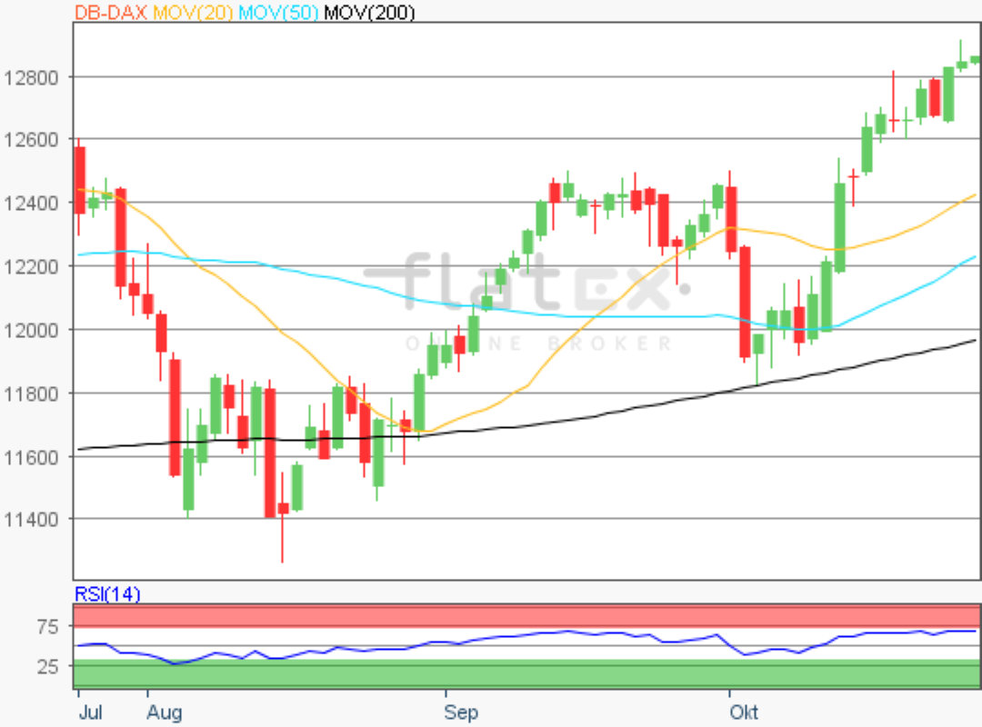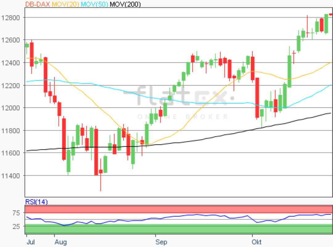 Der Deutsche Aktienindex konnte sich nach einem eher schwachen vorbörslichen Auftakt gut erholen und erreichte Intraday mit 12.819,22 ein neues Jahreshoch. Zum Xetra-Schluss notierte der DAX mit einem Kursgewinn von 0,34 Prozent bei 12.798,19 Punkten.