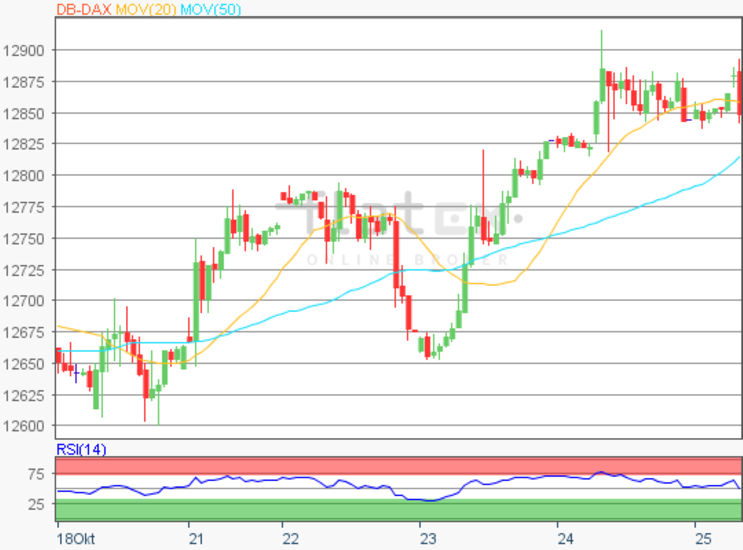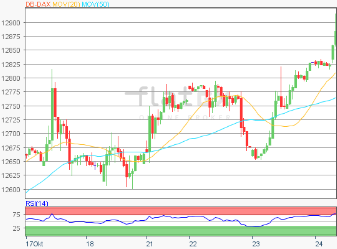 Der Deutsche Aktienindex konnte am Donnerstag via Xetra ein Kursplus von 0,58 Prozent erzielen und schloss mit 12.872,10 Punkten. Das Handelsvolumen via Xetra und Börse Frankfurt betrug rund 3,77 Mrd. Euro. Der EuroStoxx50 legte um 0,40 Prozent auf 3621,37 Zähler zu.