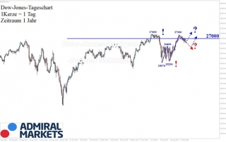 Dow Jones Analyse: Es existiert eine hohe Wahrscheinlichkeit für eine Trendfortsetzung, falls die Korrektur durch starke Käufe abgelöst wird.