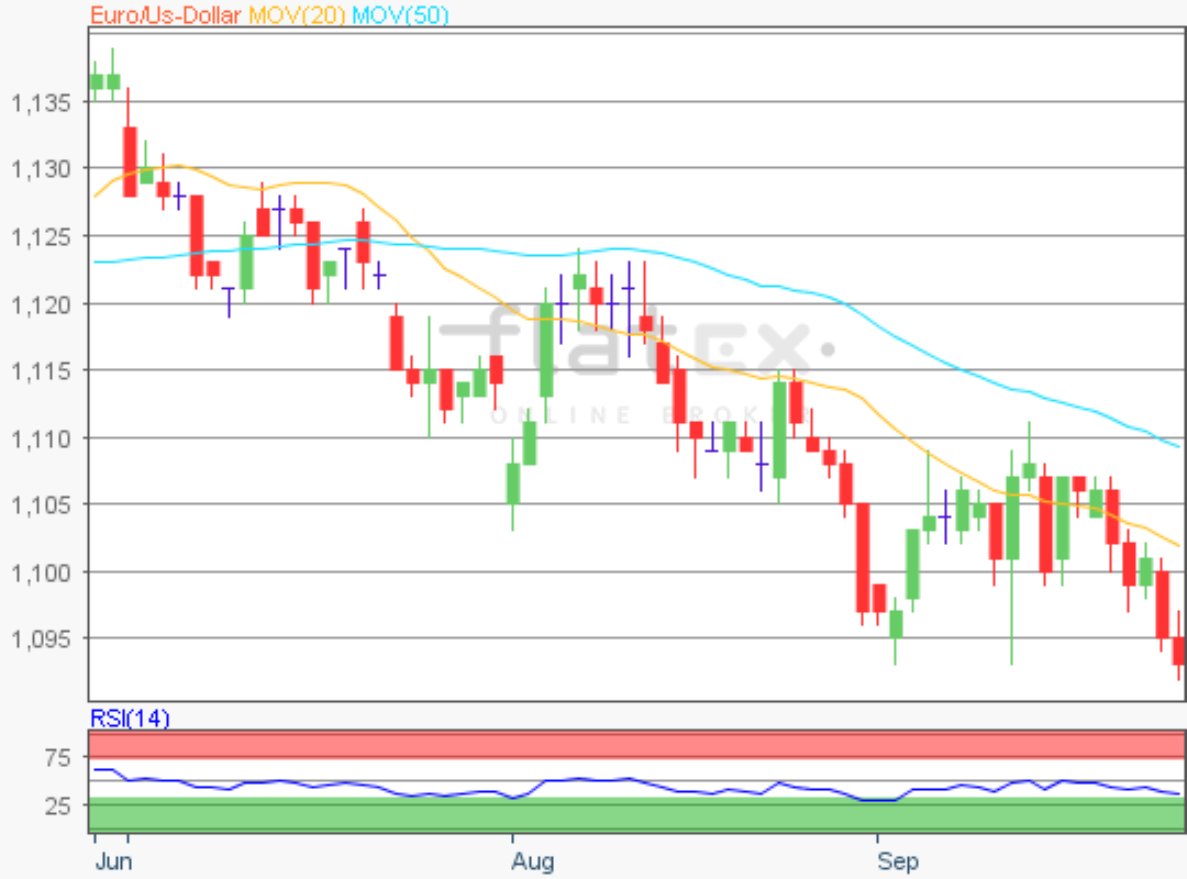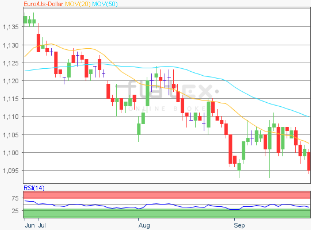 Das Währungspaar EUR/USD bewegt sich nochmals auf die beiden Mehrjahrestiefs von 1,0925 und 1,0926 zu.