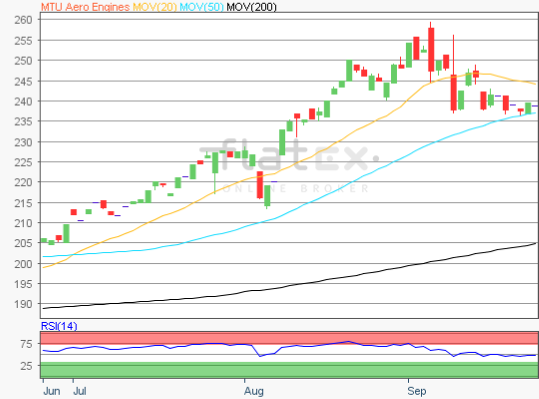 Die Aktie des DAX-Konzerns MTU Aero Engines notierte am 05. September 2019 auf einem Hoch von 258,20 Euro.