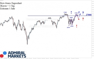 Dow Jones Analyse: Nach dem vergeblichen Versuch das höchste Hoch bei 27.400 nochmals zu erreichen, kann es gut sein, dass die Korrektur deutlich unter die 27.000 fällt.