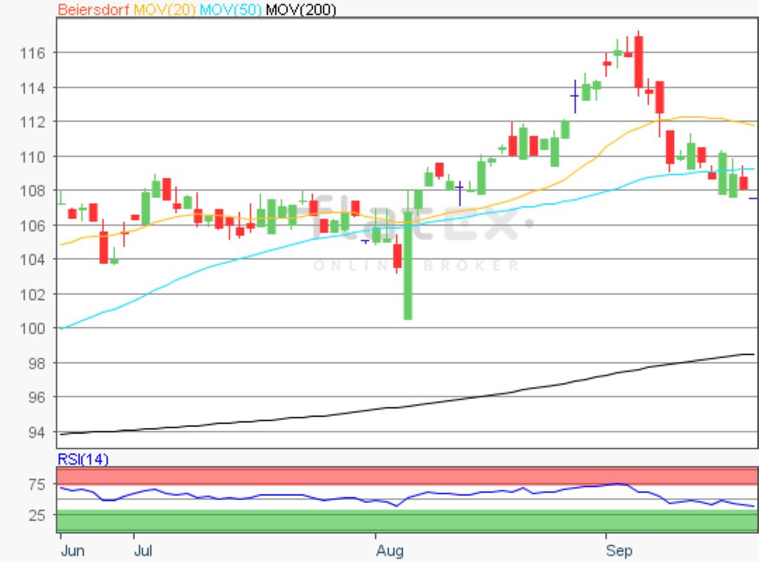 Die Aktie des DAX-Konzerns Beiersdorf notierte am 06. August 2019 bei 101,50 Euro auf einem Verlaufstief.