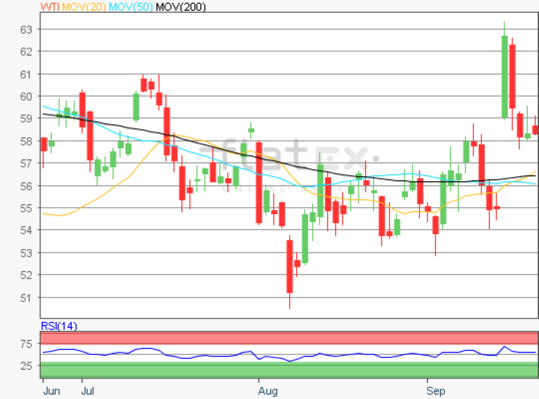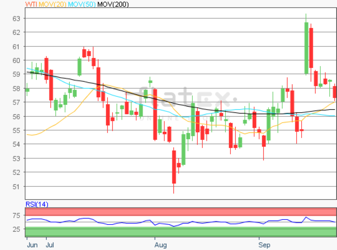 Der Preis für ein Fass Rohöl der Nordseesorte Brent an der Terminbörse ICE tendierte seit dem Spike-Event rund um den Angriff auf die saudischen Ölanlagen überwiegend seitwärts bis abwärts gerichtet.