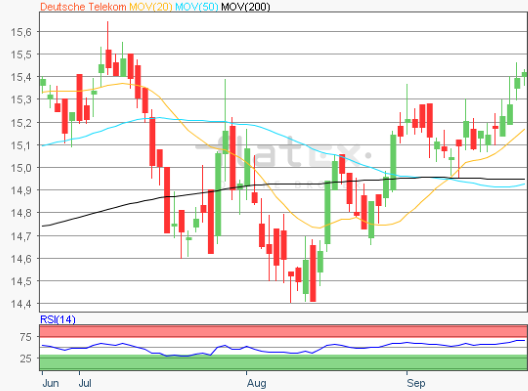 Die Aktie der Deutschen Telekom notierte am 23. Mai 2017 bei 18,15 Euro auf einem langfristigen Hoch.