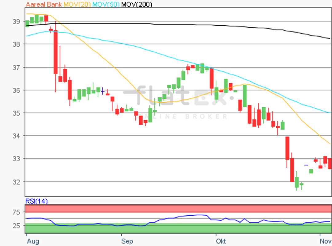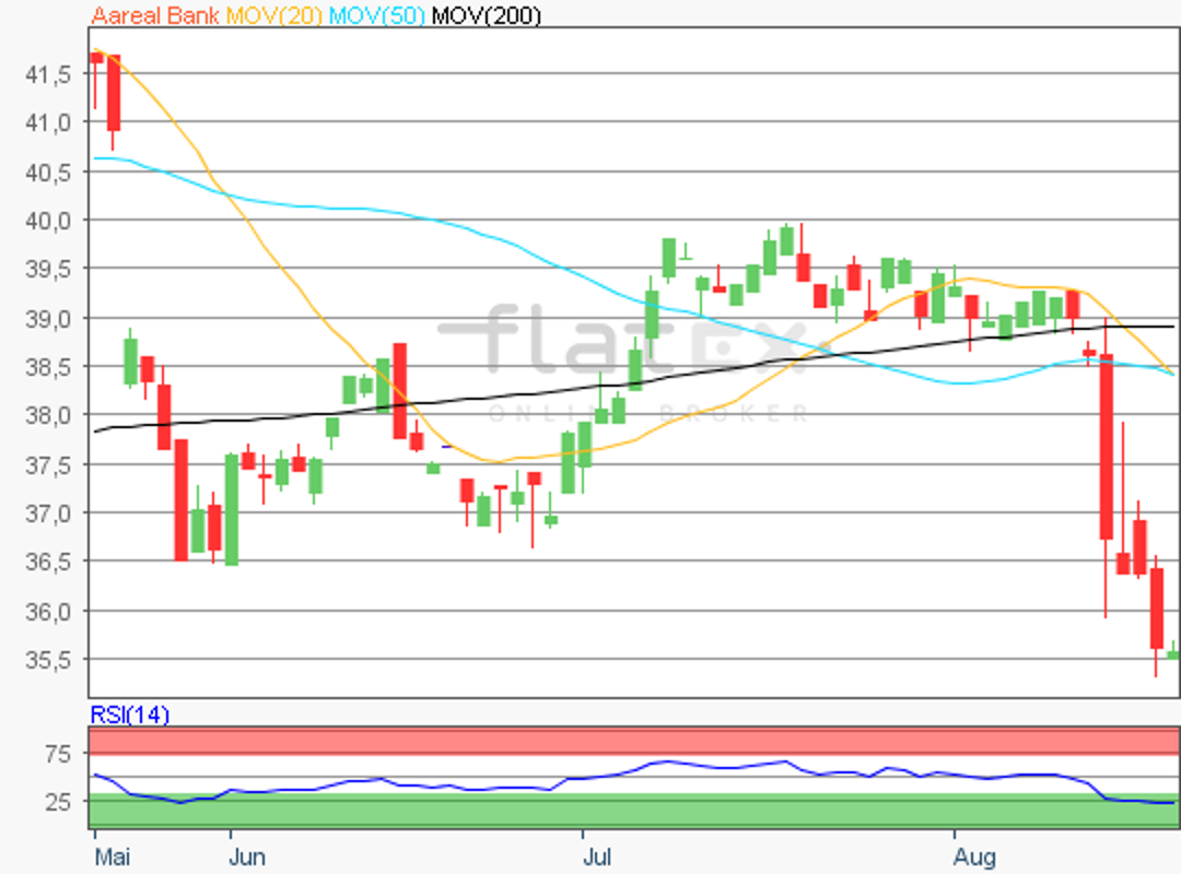 Die Aktie des MDAX-Konzerns Aareal Bank notierte am 31. Mai 2018 auf einem Verlaufstief von 36,40 Euro.