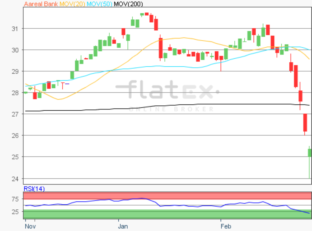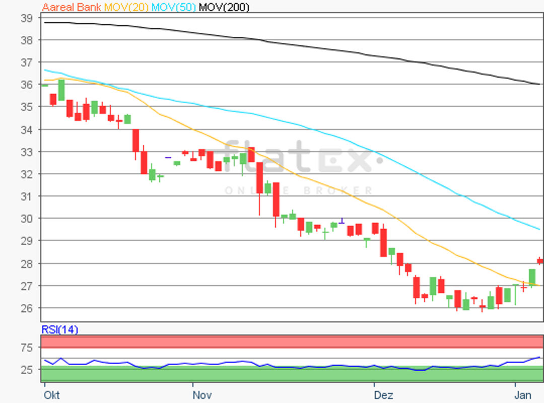 Die Aktie des MDAX-Konzerns Aareal Bank notierte am 20. Dezember 2018 auf einem letzten hier relevanten Verlaufstief von 25,82 Euro.
