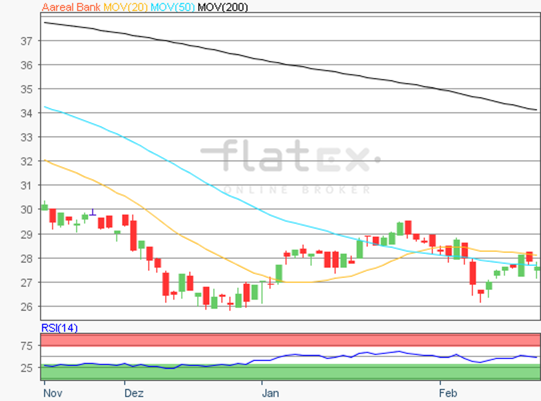 Die Aktie des MDAX-Konzerns AarealBank notierte am 24. April 2018 auf einem Hoch von 42,93 Euro.