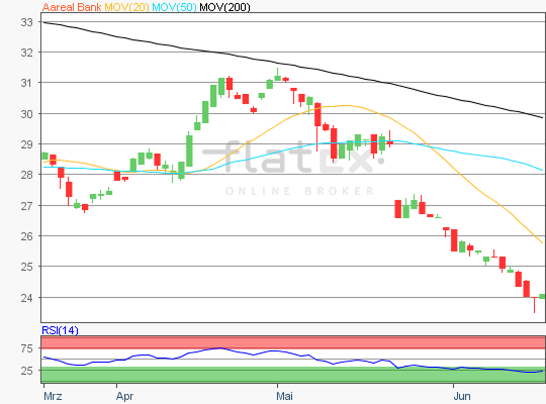 Die Aktie des MDAX-Konzerns Aareal Bank notierte am 25. Juni 2019 auf einem Verlaufstief von 22,43 Euro.