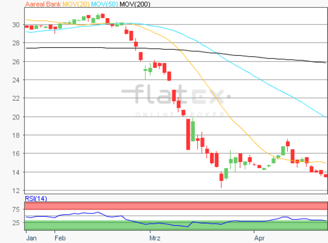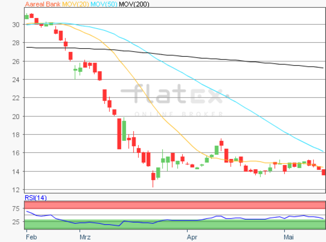 Die Aktie des MDAX-Konzerns Aareal Bank notierte am 14. April 2020 auf einem letzten Zwischenhoch von 17,79 Euro.