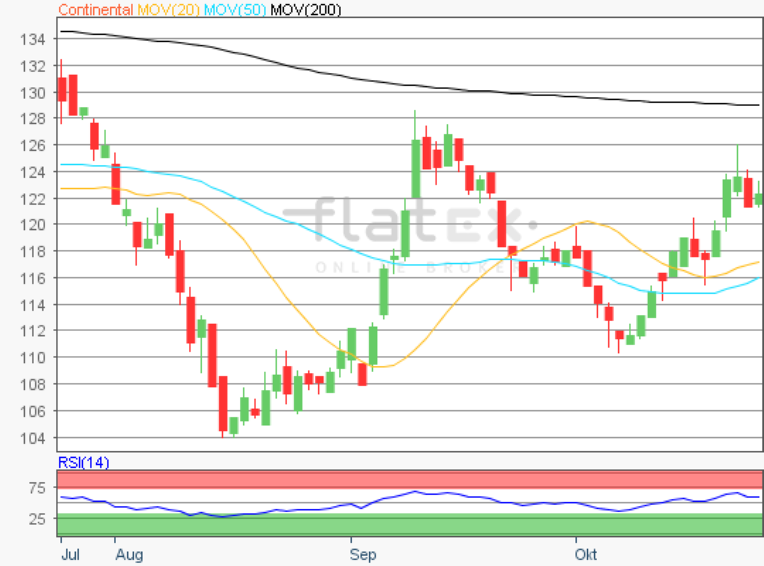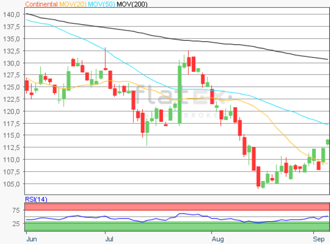 Die Aktie des DAX-Konzerns Continental notierte am 09. Oktober 2019 bei 109,92 Euro auf einem jüngsten Verlaufstief.