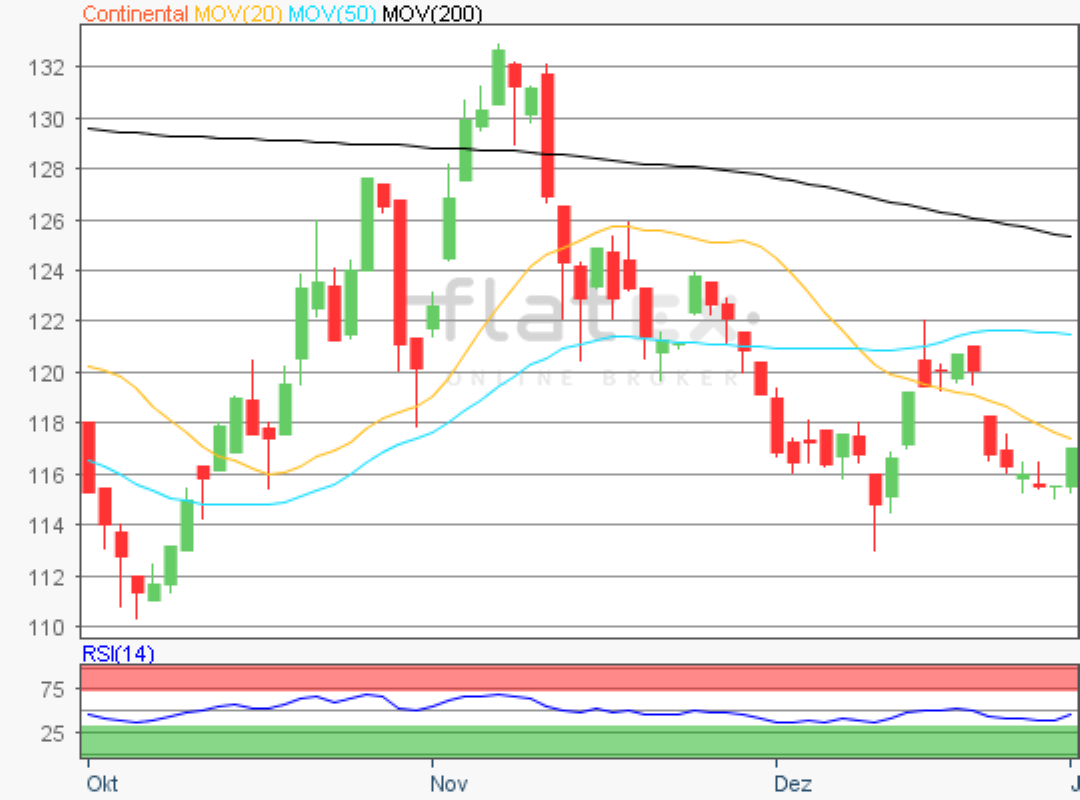 Die Aktie des DAX-Konzerns Continental notierte am 01. Juli 2019 auf Sicht der letzten 52 Wochen auf einem Zwischenhoch von 133,80 Euro.