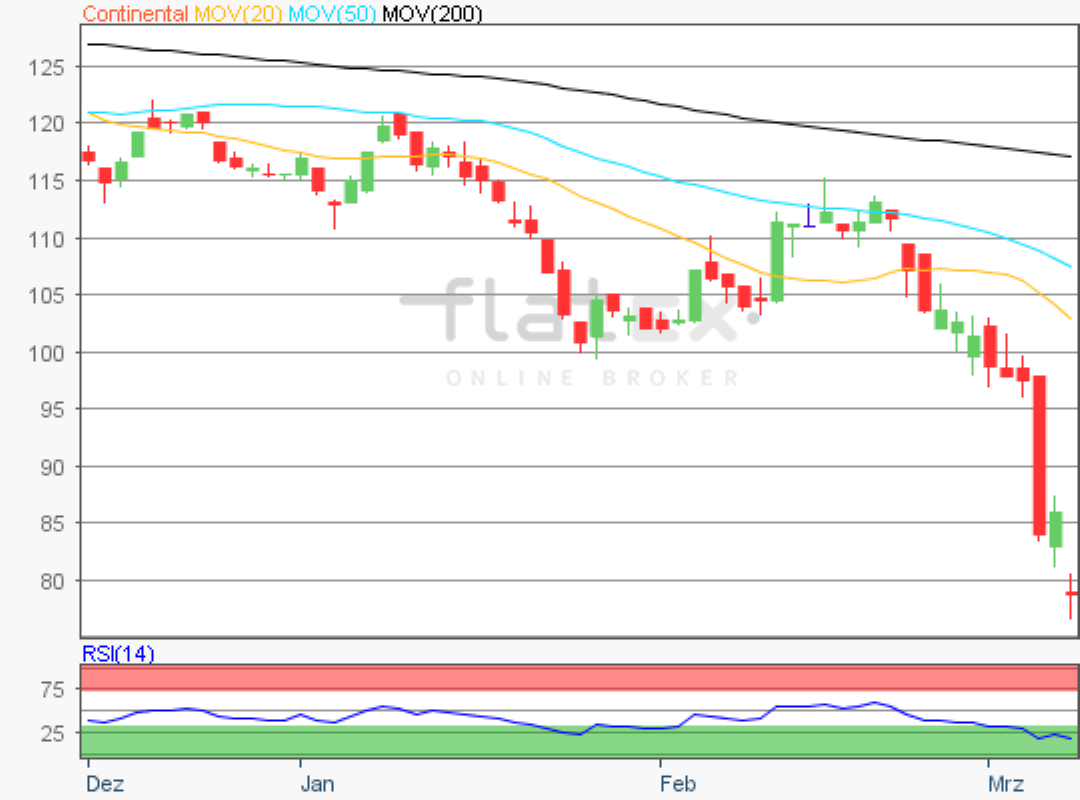 Die Aktie des DAX-Konzerns Continental notierte am 19. März 2020 auf einem Verlaufstief von 51,45 Euro.