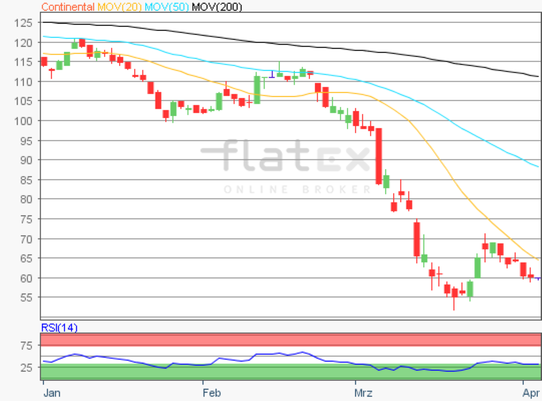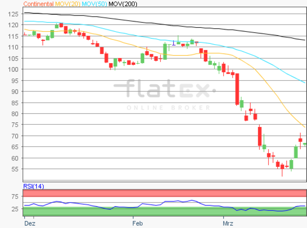 Die Aktie des DAX-Konzerns Continental notierte am 19. März 2020 auf einem letzten Verlaufstief von 51,46 Euro.