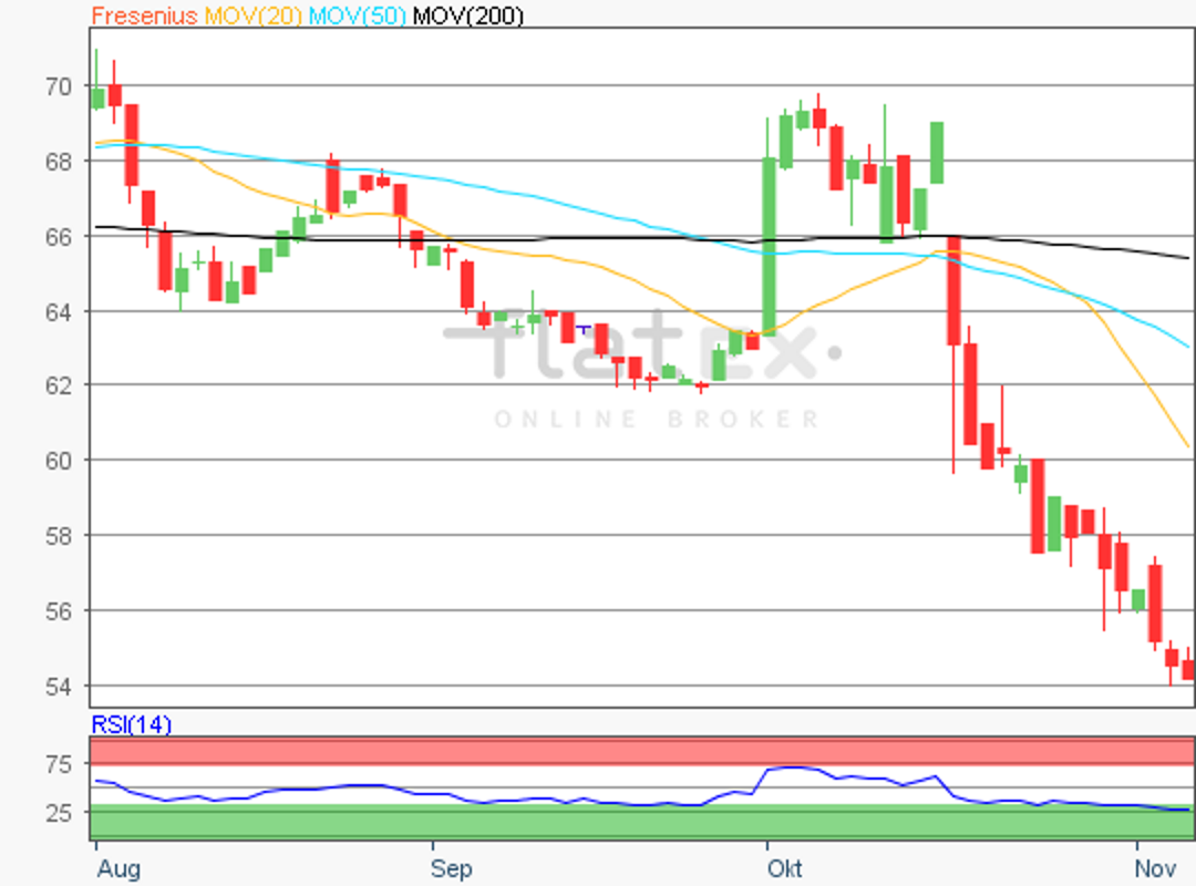 Die Aktie des DAX-Konzerns Fresenius SE notierte am 01. November 2018 mit 55,76 Euro auf einem kurzfristigen Verlaufstief.
