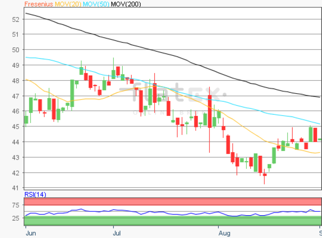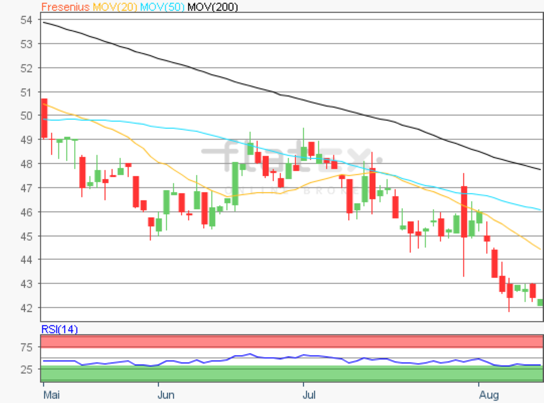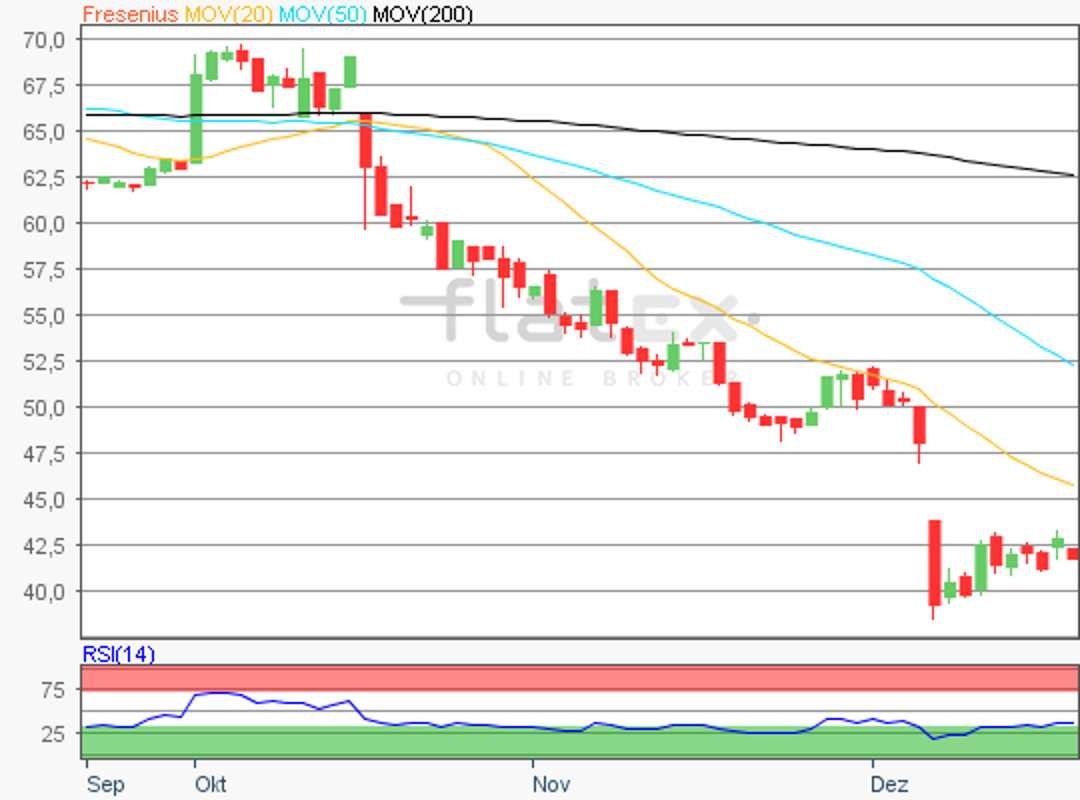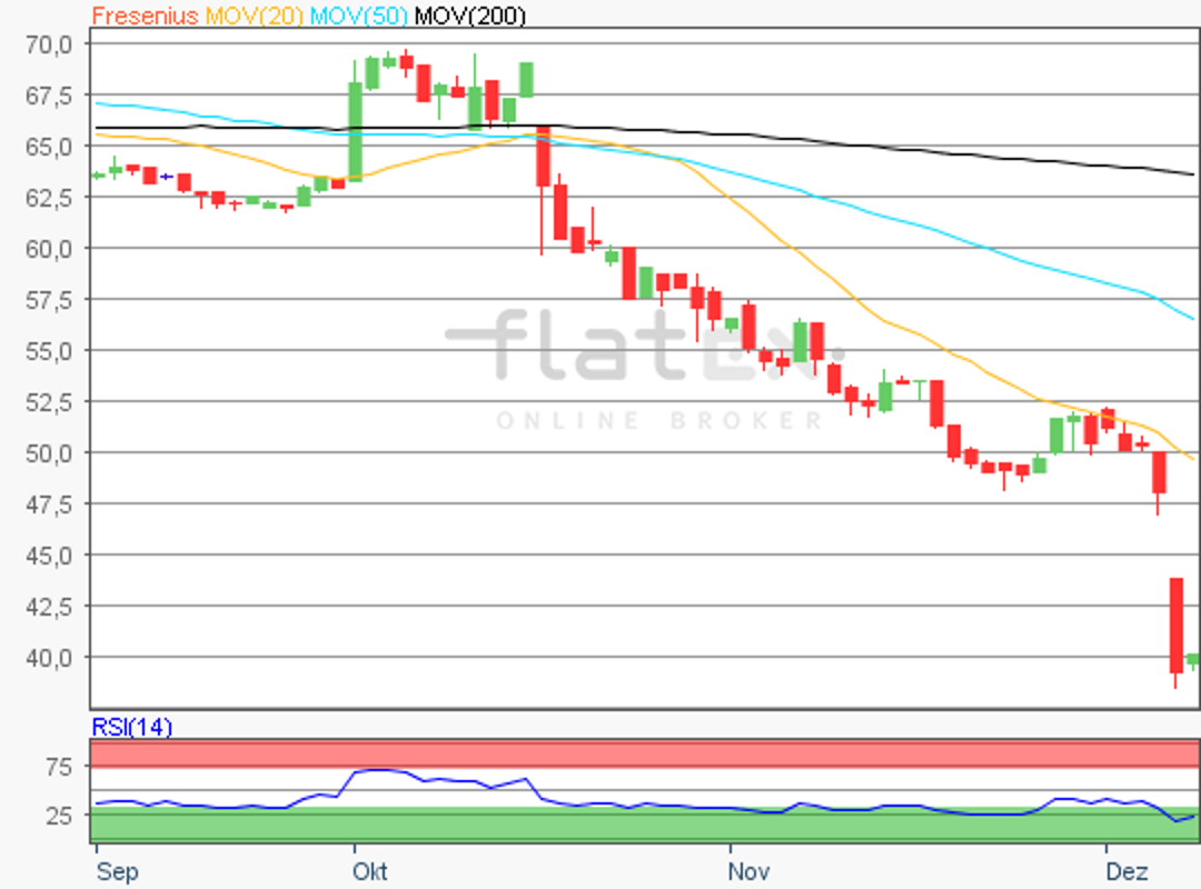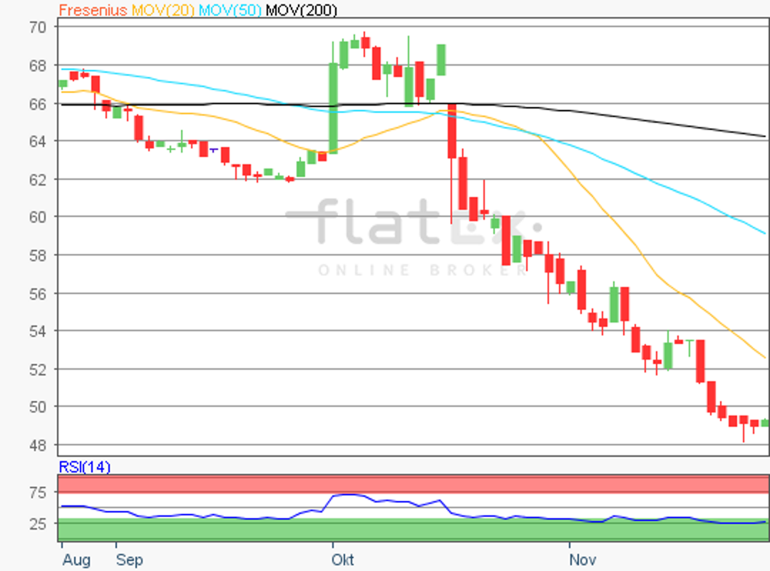 Die Aktie des DAX-Konzerns Fresenius SE notierte am 23. November 2018 mit 48,00 Euro auf einem Verlaufstief.
