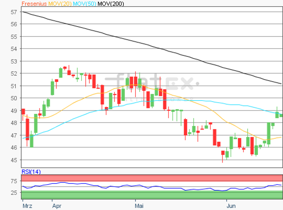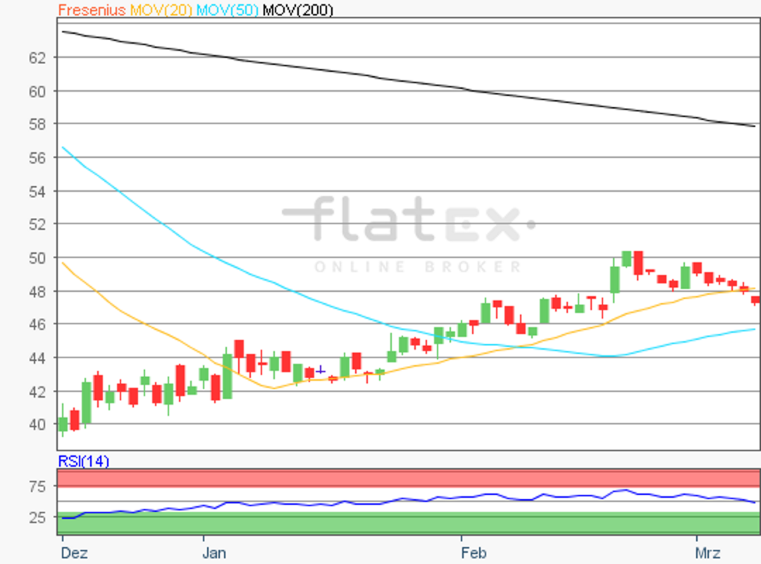 Die Aktie des DAX-Konzerns Fresenius SE bildete am 26. März 2018 bei 58,94 Euro ein Verlaufstief aus.