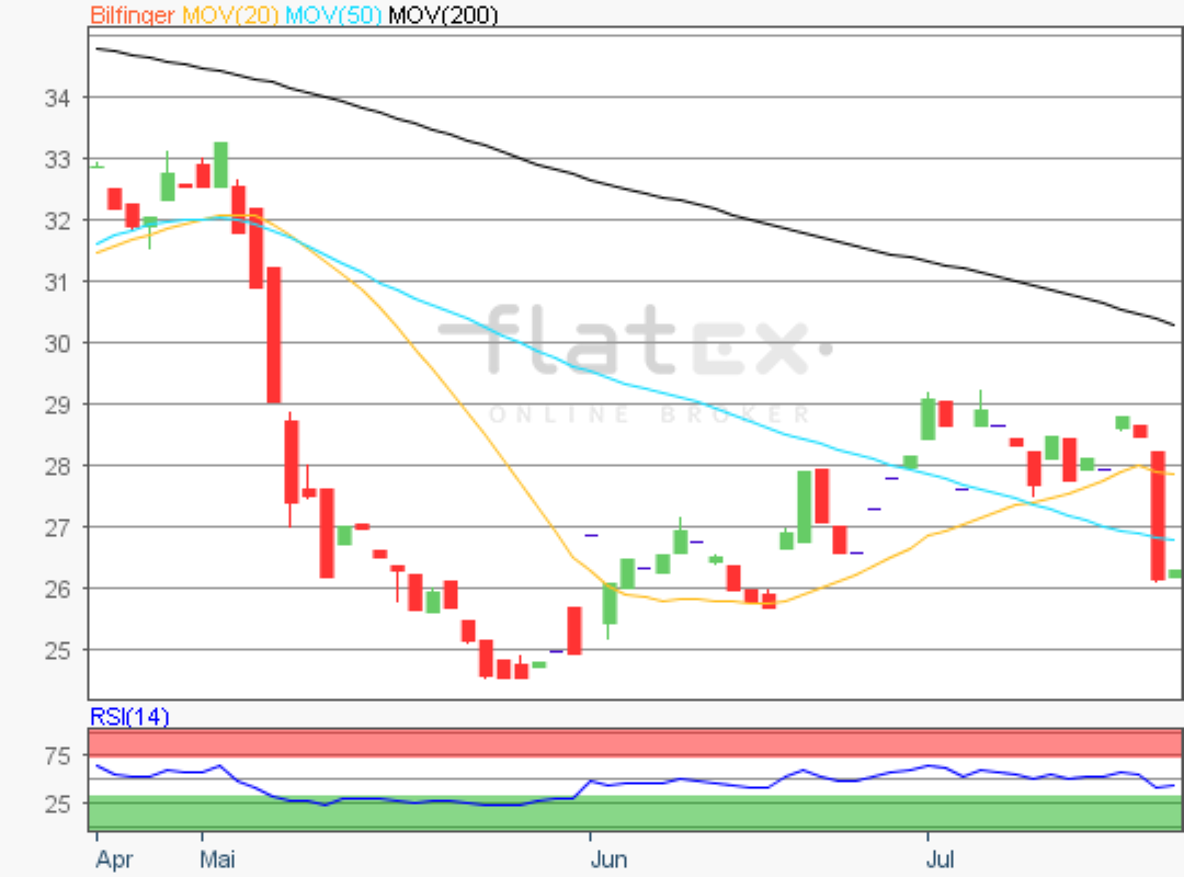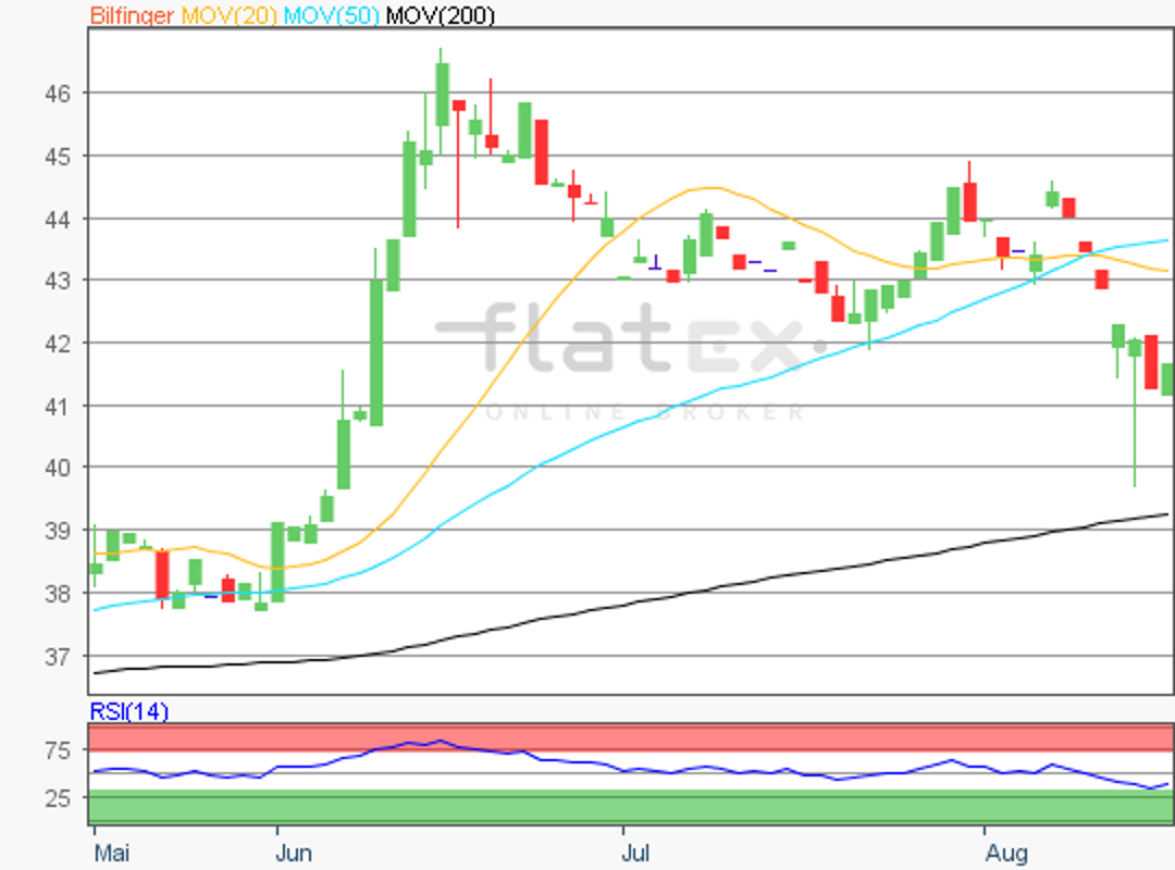 Die Aktie des MDAX-Konzerns Bilfinger notierte im Verlauf der letzten 52 Wochen am 25. September 2019 auf einem Zwischenhoch von 45,14 Euro.