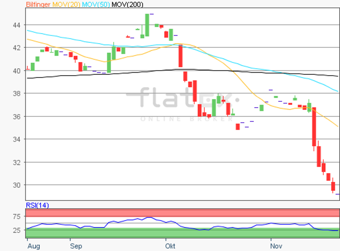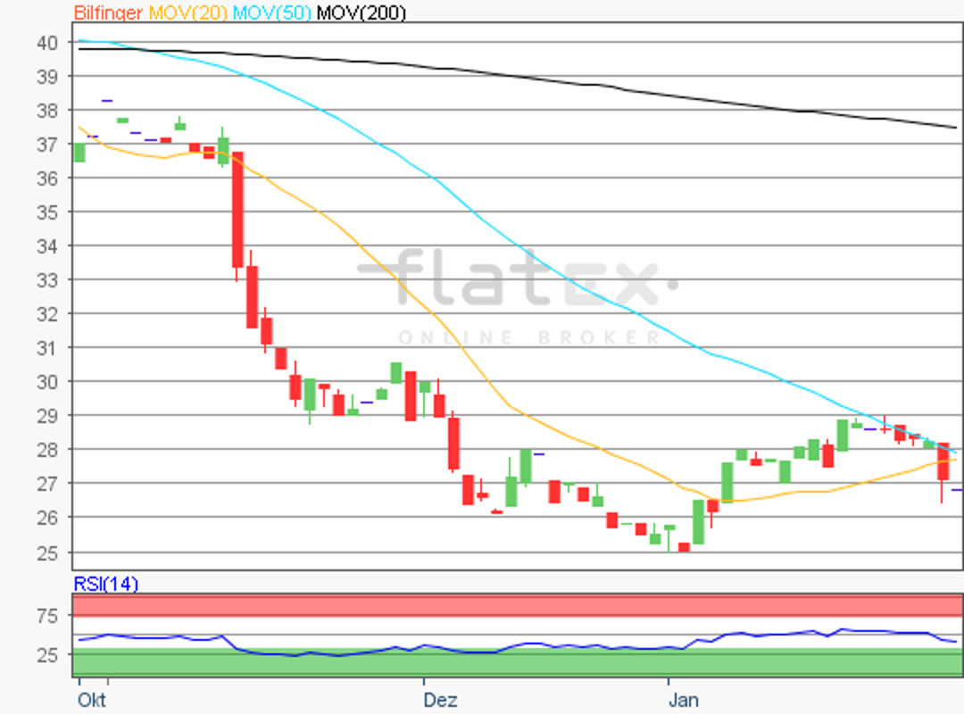Die Aktie des MDAX-Konzerns Bilfinger notierte am 12. Februar 2018 auf einem Verlaufstief von 33,66 Euro.