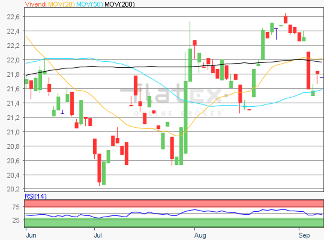 Die Aktie des EuroStoxx50-Konzerns Vivendi bildete am 10. Januar 2018 bei 24,87 Euro ein Hoch aus.