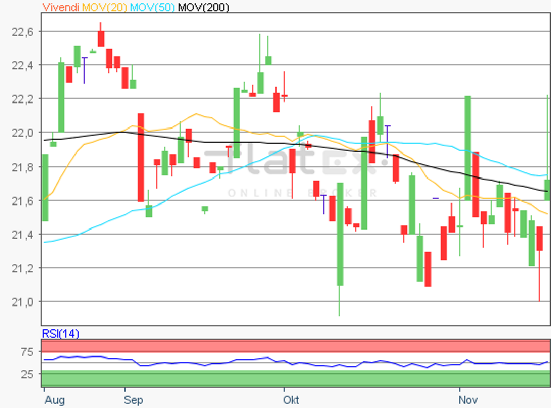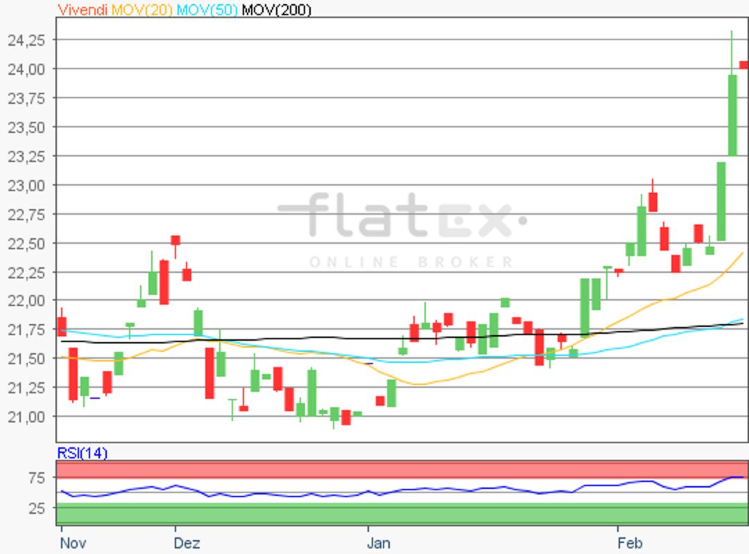 Die Aktie des französischen Großkonzerns Vivendi notierte am 10. Januar 2018 bei 24,87 Euro auf einem Hoch.