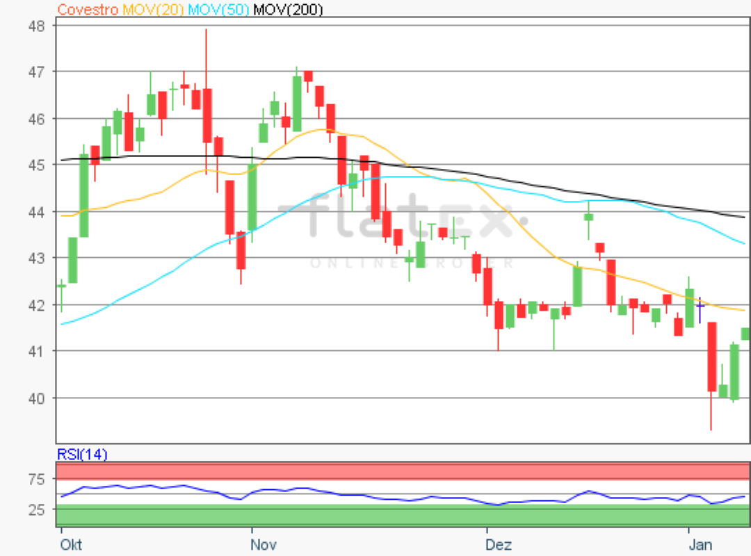 Die Aktie des DAX-Konzerns Covestro notierte am 03. Februar 2020 auf einem letzten Verlaufstief von 37,43 Euro.