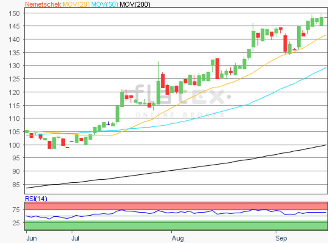 Die Aktie des TecDAX-Konzerns Nemetschek notierte am 06. September 2018 auf einem Verlaufstief von 134,70 Euro.