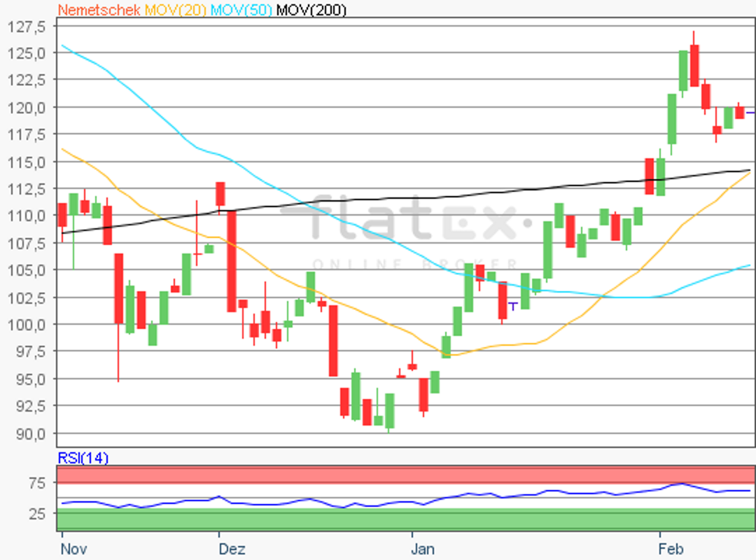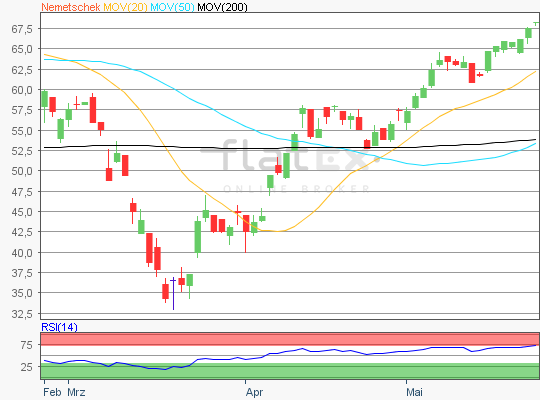 Die Aktie des TecDAX-Konzrns Nemetschek notierte am 20. Januar 2020 auf einem letzten Zwischenhoch von 69,50 Euro.