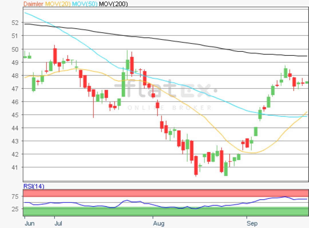 Die Aktie des DAX-Konzerns Daimler notierte am 15. August 2019 auf einem übergeordneten Verlaufstief von 40,31 Euro.
