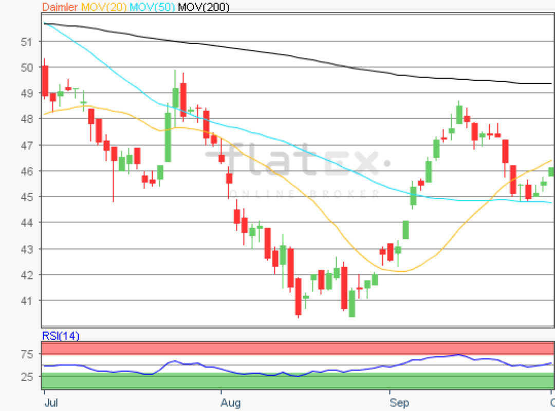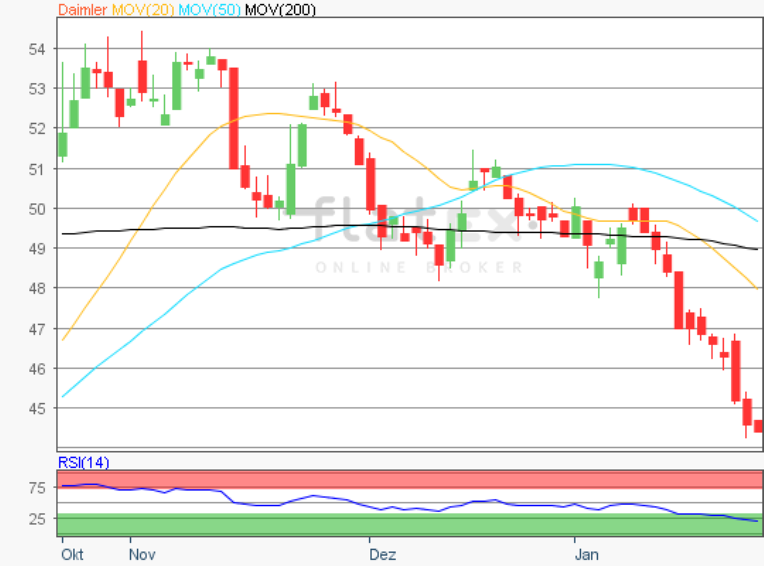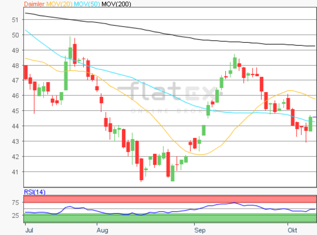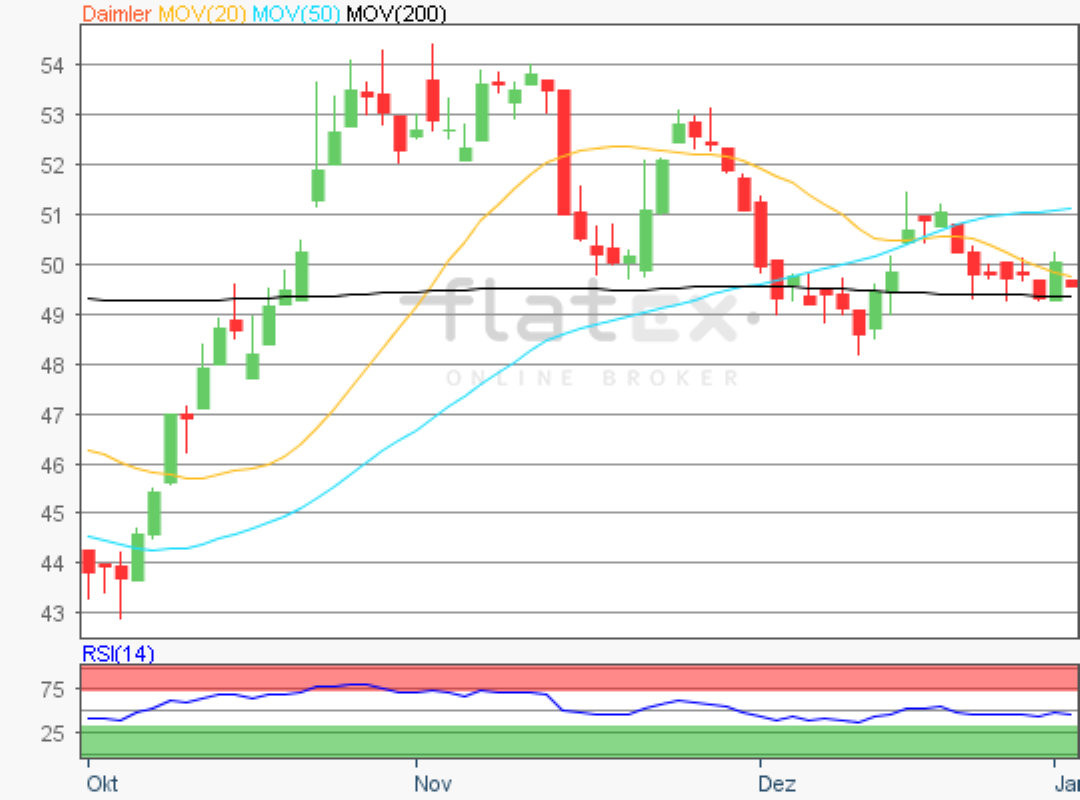Die Aktie des DAX-Konzerns Daimler notierte am 04. November 2019 auf einem letzten Hoch von 54,50 Euro.
