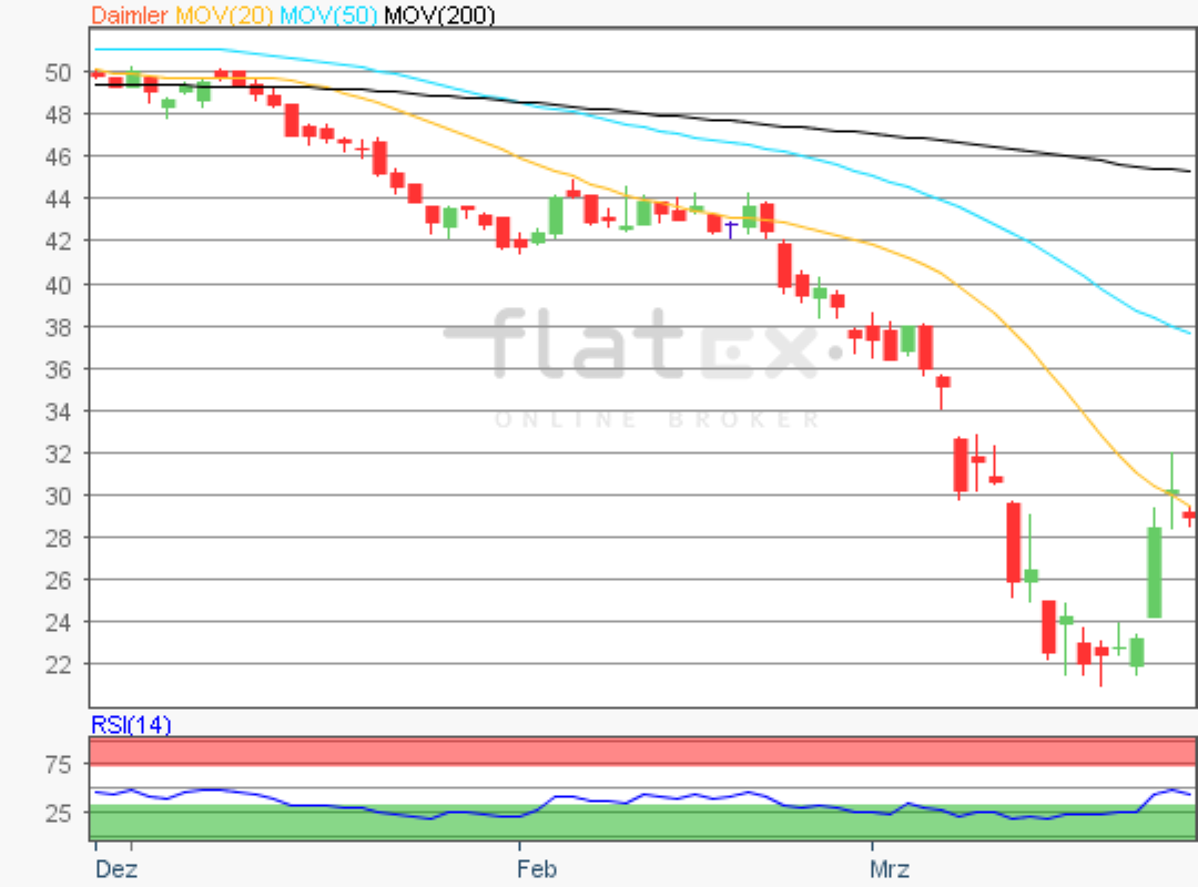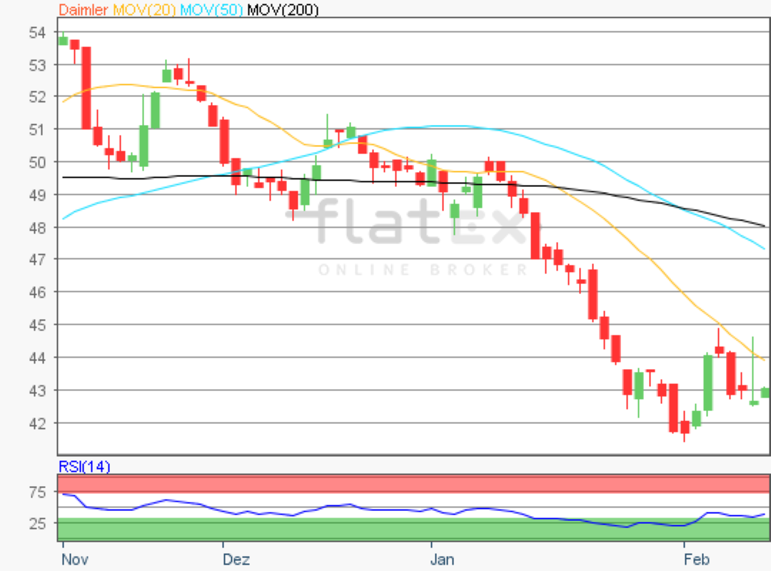 Die Aktie des DAX-Konzerns Daimler notierte am 15. August 2019 auf einem letzten Verlaufstief von 40,31 Euro.