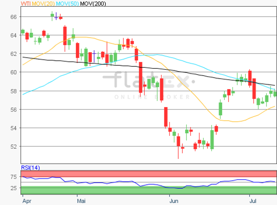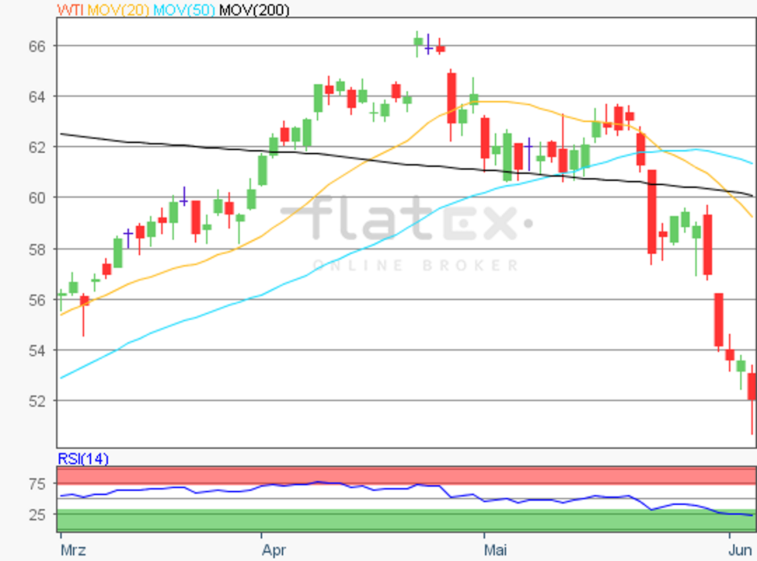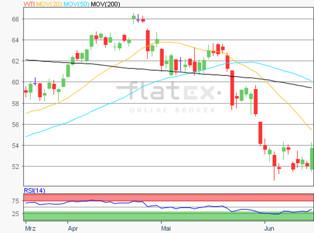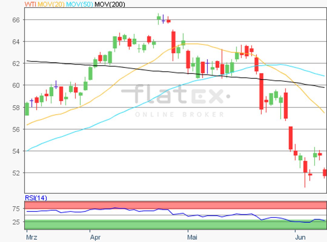 Die leichten Preisrücksetzer vom Wochenbeginn muten eher als technisch bedingte Konsolidierungen an, denn auf 4-Stunden- und 1-Stunden-Chartbasis notierte der WTI-August-Kontrakt schließlich massiv im überkauften Bereich mit RSI-Werten jenseits der 80 Punkte.