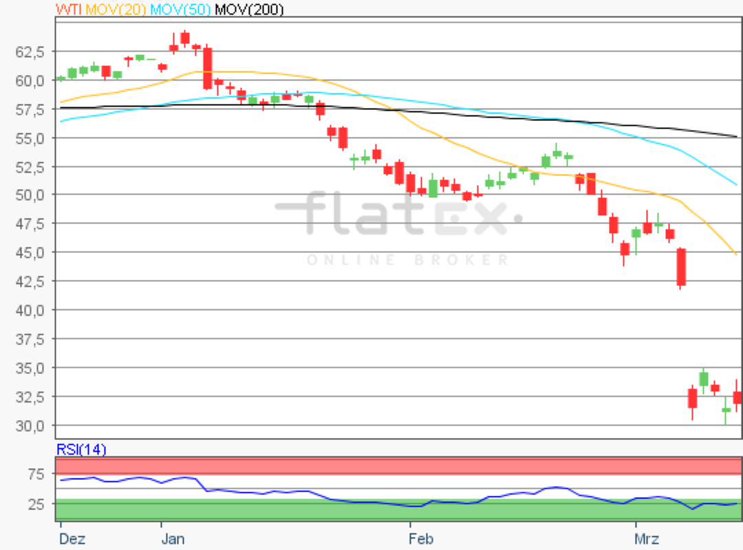 Der Preis für ein Fass Rohöl der US-Sorte WTI (West Texas Intermediate) kletterte nachbörslich an der US-Terminbörse NYMEX am Freitag massiv nordwärts in Richtung der Marke von 34,00 US-Dollar.