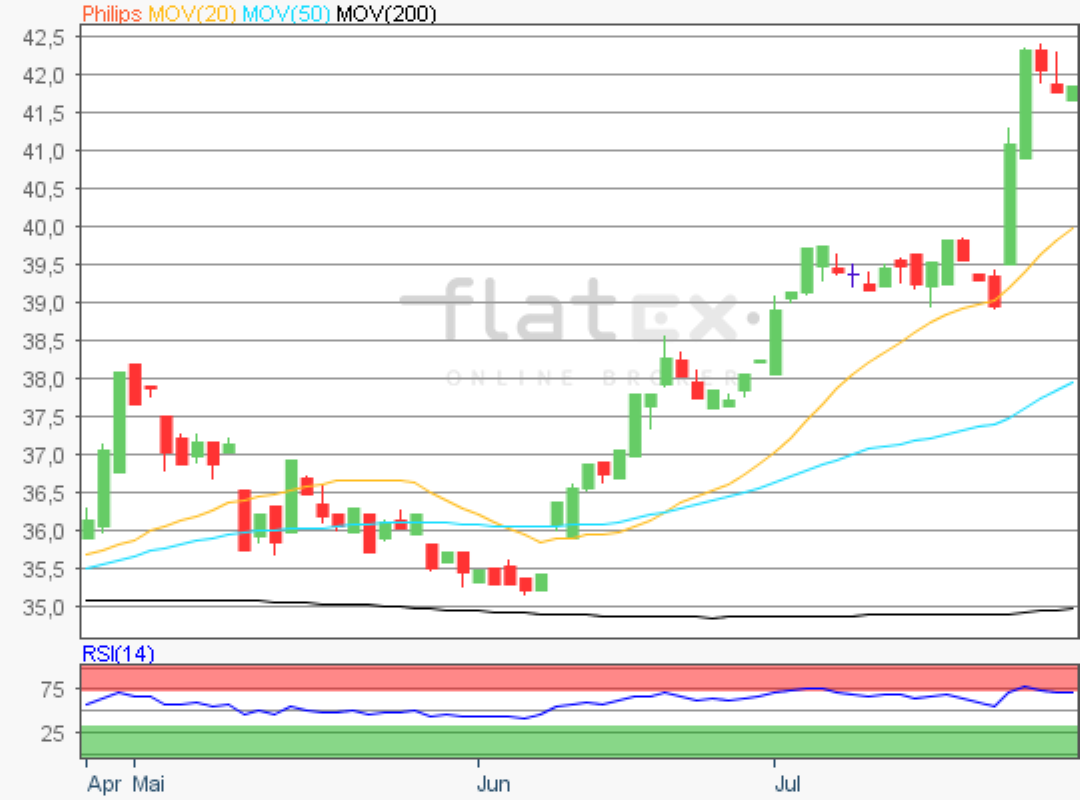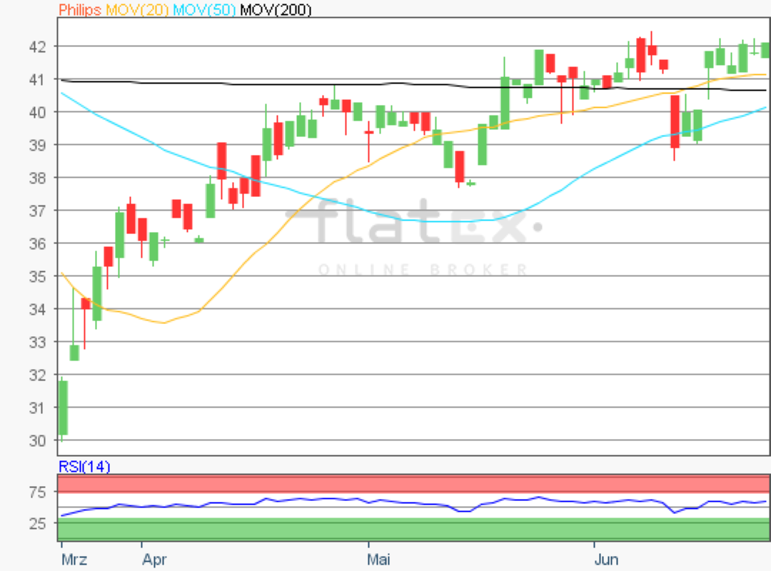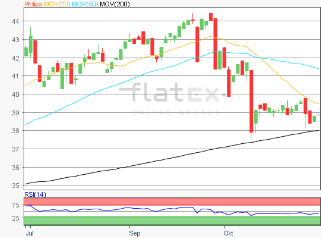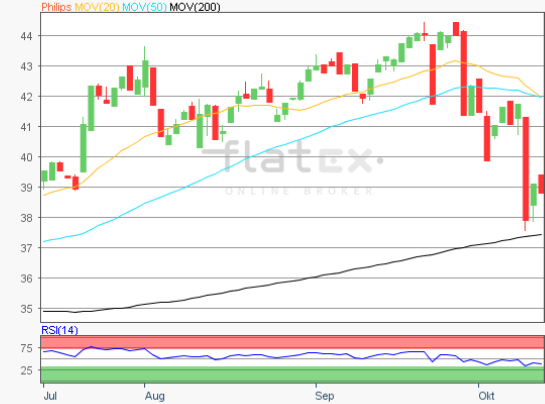 Die Aktie des EuroStoxx50-Konzerns Philips notierte am 28. September 2018 auf einem Hoch von 40,02 Euro.