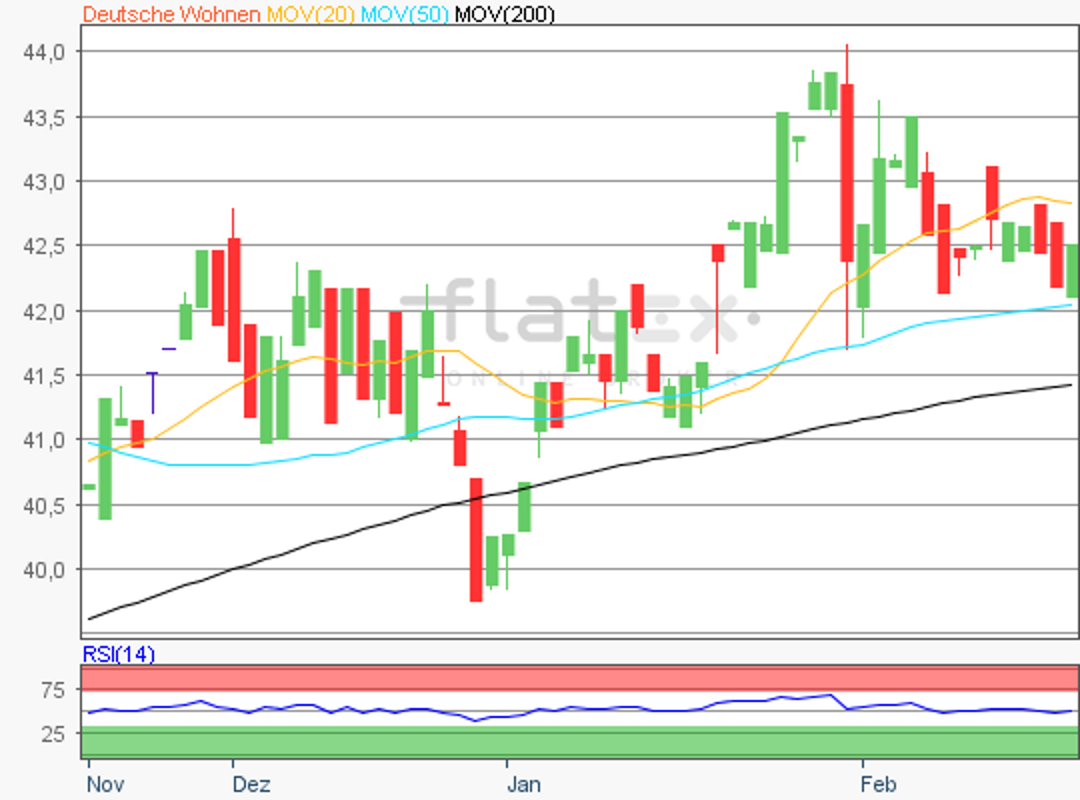 Die Aktie des MDAX-Konzerns Deutsche Wohnen notierte am 31. Januar 2019 auf einem Zwischenhoch von 44,13 Euro.
