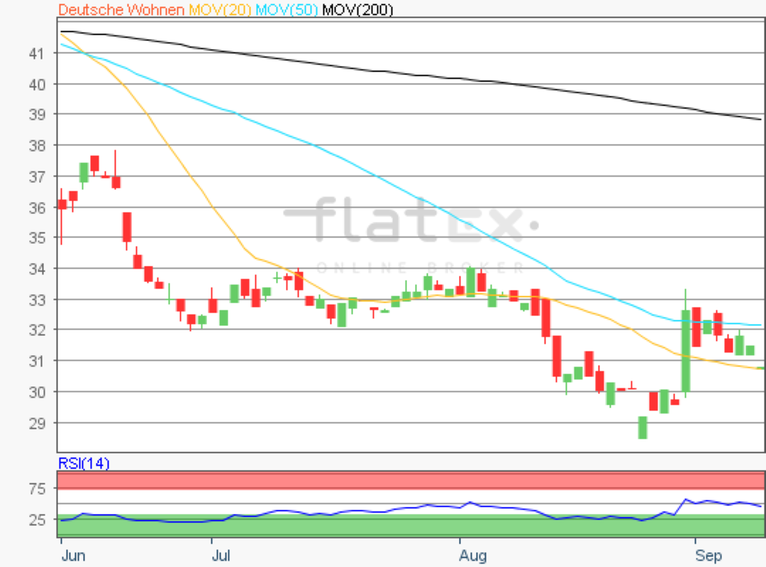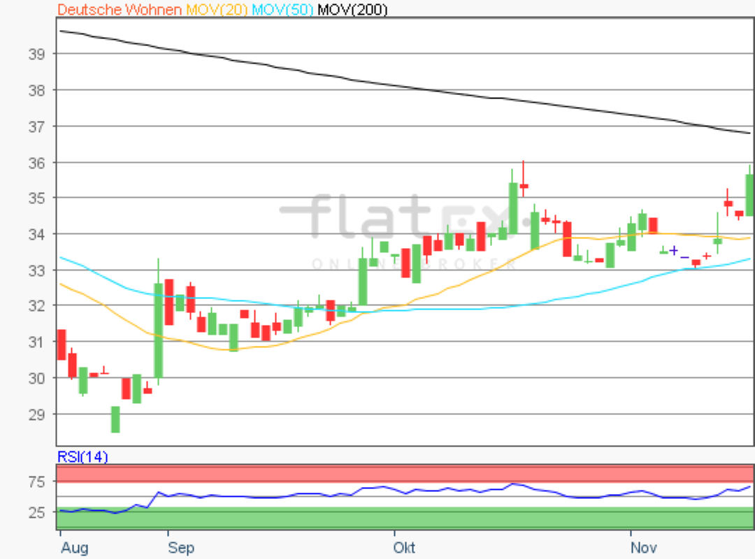 Die Aktie des MDAX-Konzerns Deutsche Wohnen notierte am 15. Oktober 2018 auf einem Verlaufstief von 38,56 Euro.